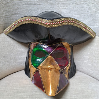 Farandole de masques: présentation de différents masques authentiques vénitiens et leur signification du temps de la sérénissime.